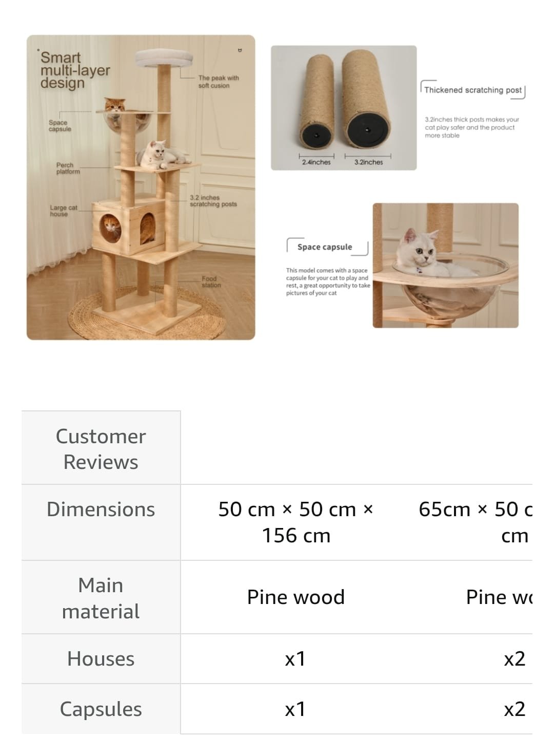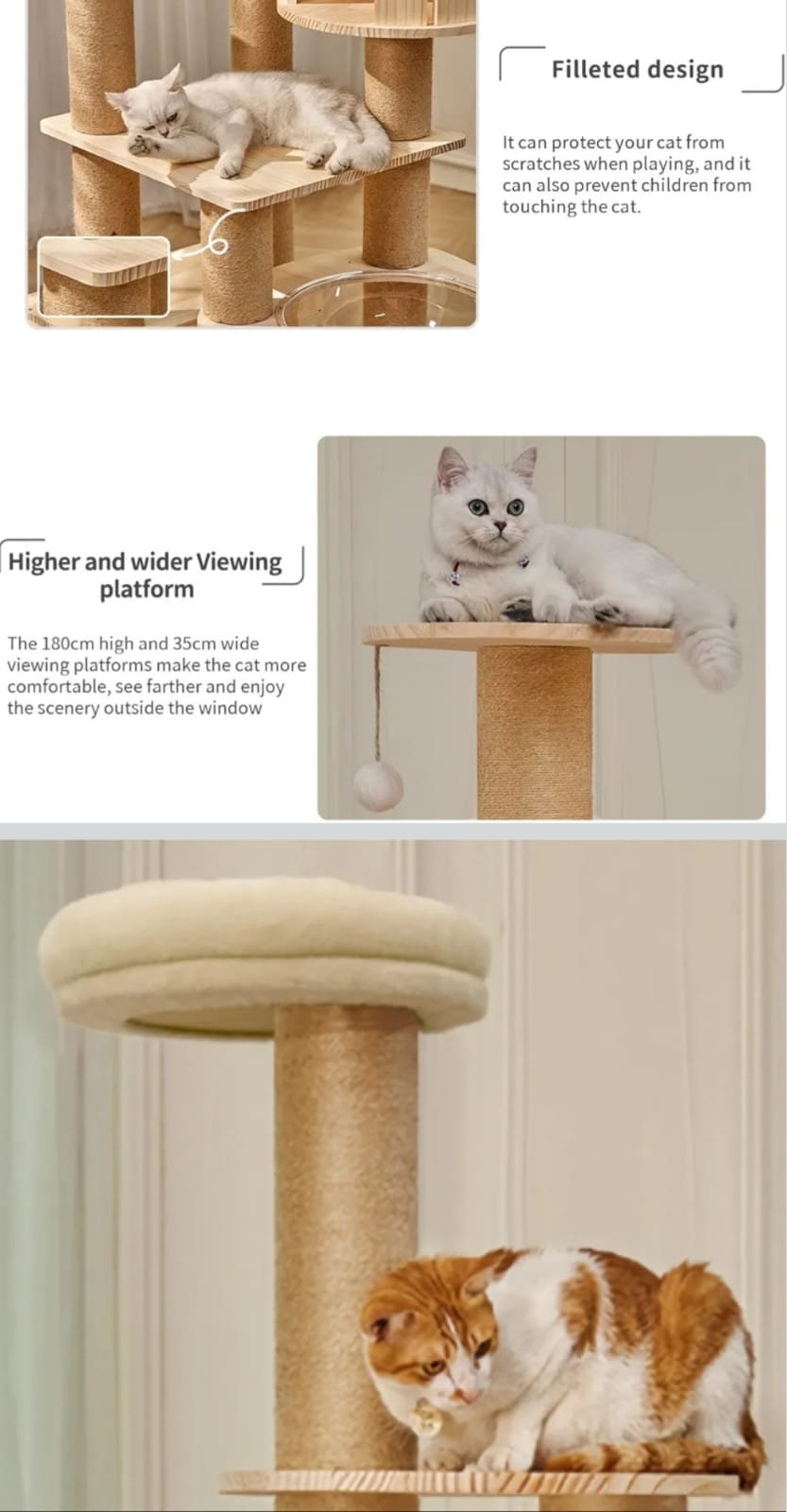 امنح قطتك مساحة ممتعة وآمنة للعب والاسترخاء مع شجرة القطط الخشبية الكبيرة المصنوعة من خشب صلب متين لضمان ثبات طويل الأمد وتحمل وزن القطط المختلفة. بارتفاع 61.4 إنش، توفر هذه الشجرة مستويات متعددة للعب والقفز، بالإضافة إلى وسادة مريحة لتستمتع قطتك بالراحة والاسترخاء بعد جلسة اللعب. تصميمها الجذاب يناسب جميع ديكورات المنزل ويحفز قطتك على ممارسة النشاط البدني بطريقة ممتعة وصحية.