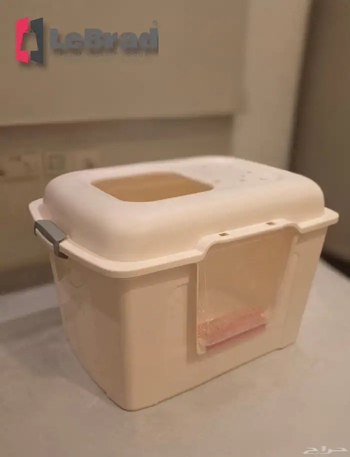 صندوق رمل كبير للقطط – ليتر بوكس واسع بسقف قابل للفتح اللون: أوف وايت وبينك (مستخدم)
